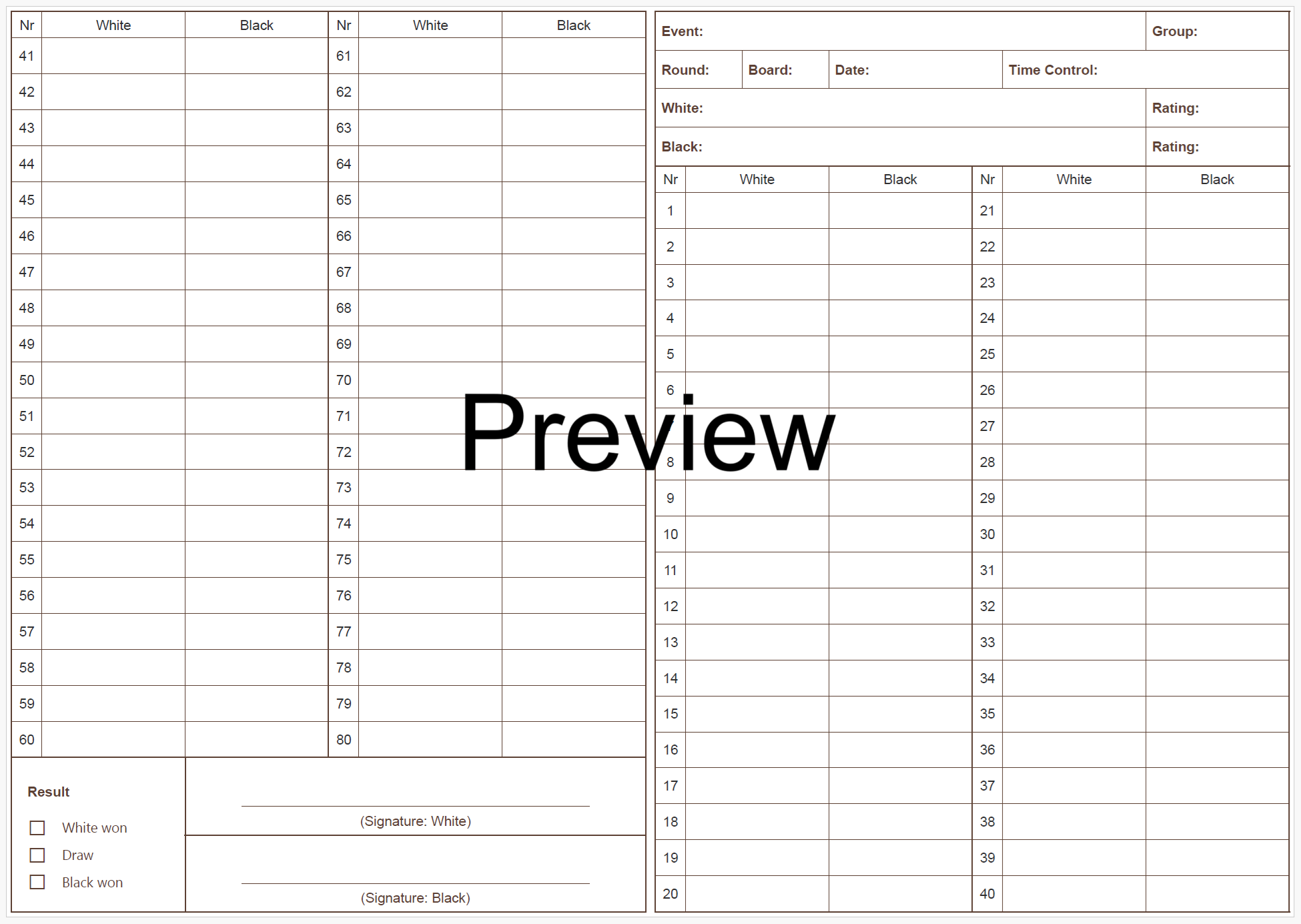 Tilbake til Chess Score Sheets